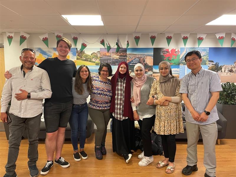 Swansea University Community Classes students celebrating the end of exam day with their teacher